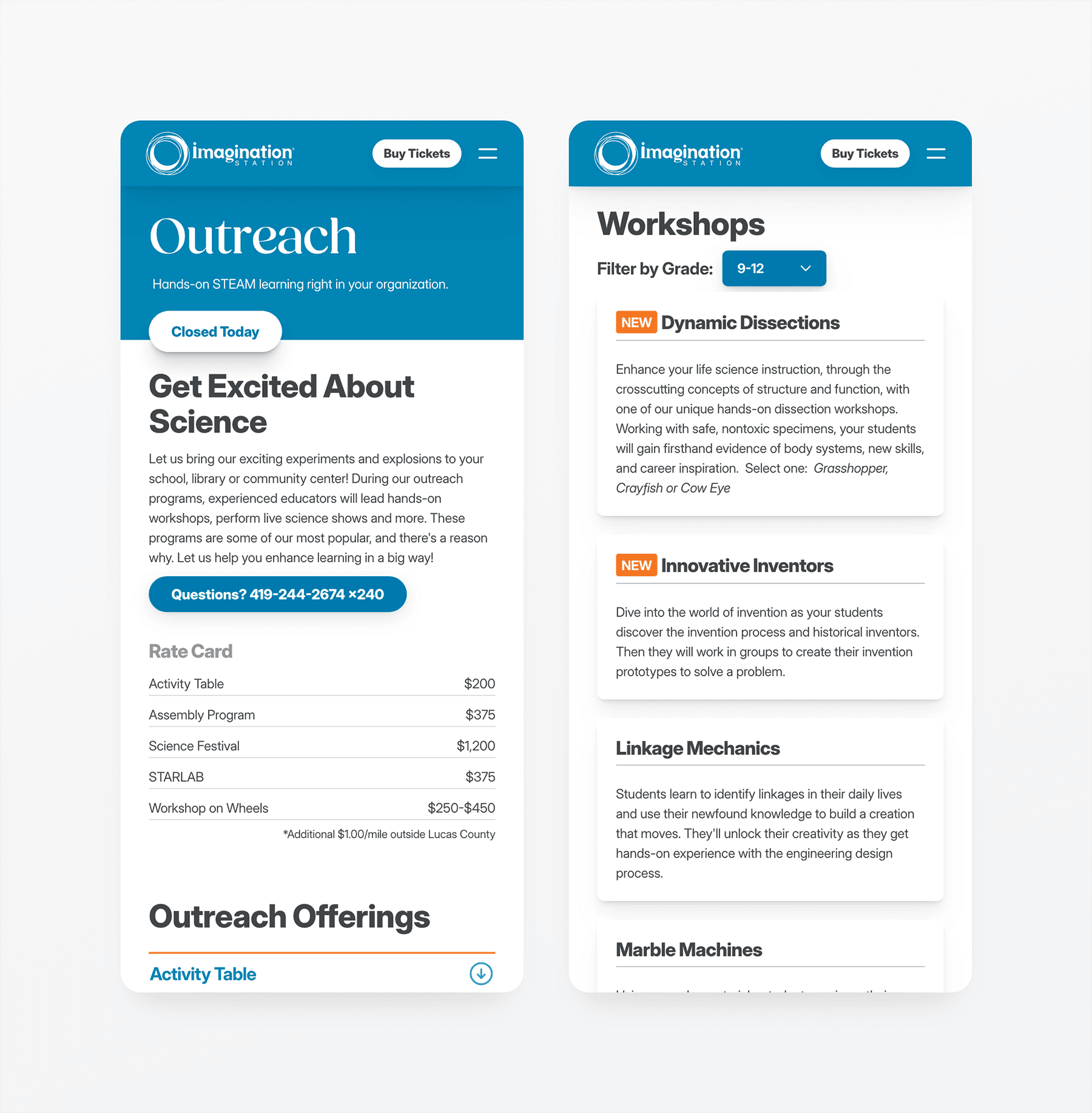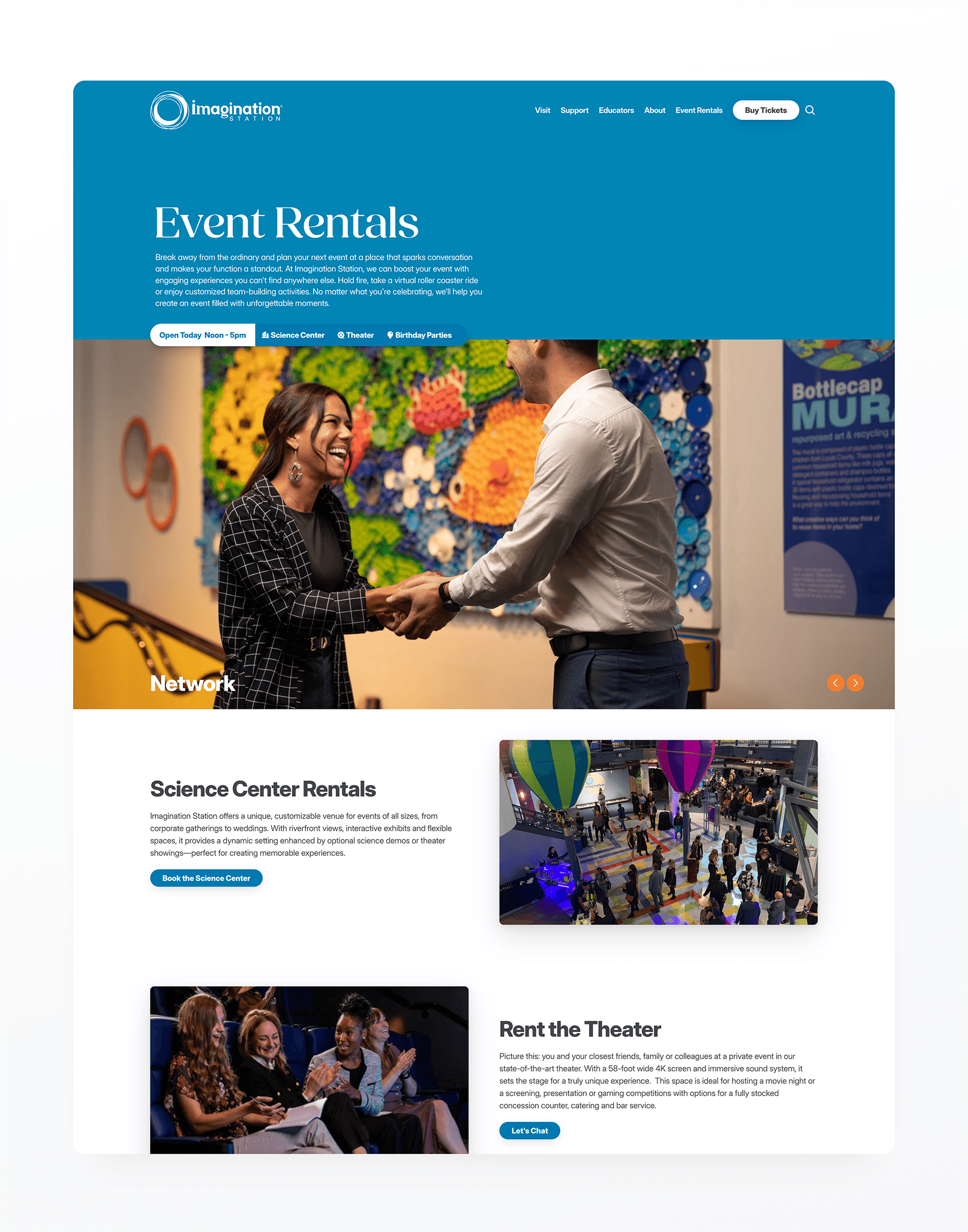 For the redesign and build of the Imagination Station website, our team focused on creating an engaging, dynamic experience that reflects the wonder and hands-on learning found at the interactive science center. Imagination Station is a cornerstone of STEM education in the region, inspiring curiosity through interactive exhibits, live demonstrations and family-focused programming that bring science concepts to life for visitors of all ages. Using flexible design tools, we translated this mission into a modern website that showcases featured exhibits, highlights upcoming events and provides intuitive access to membership, ticketing and visit information — all while reinforcing the center’s playful yet educational brand.