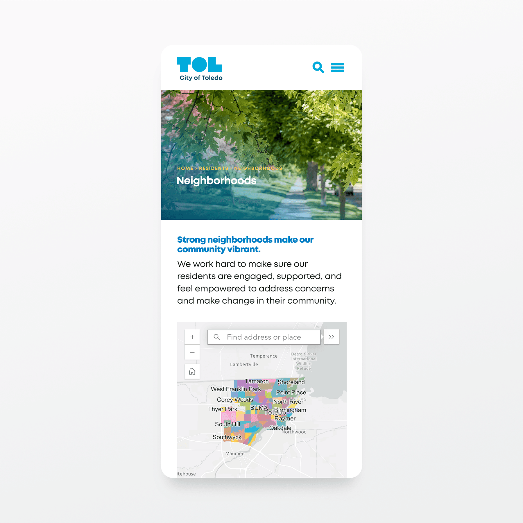 Built on a foundation of analytic research, the website is designed to serve residents first by responding directly to their needs, behaviors, and common pain points. Content is structured for quick access to essential information, while flexible components allow the platform to evolve alongside user insights. The outcome is a purposeful, resident-focused experience that balances thoughtful design with data-informed decisions, ensuring the site is not only inclusive in principle but effective in practice.